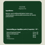 Ingrediënten: Magnesium, capsule/verdikkingsmiddel (rundergelatine), vulmiddel (rijstbloem), L-glycine, taurine, antiklontermiddelen (rijstconcentraat), pyridoxaal-5-fosfaat