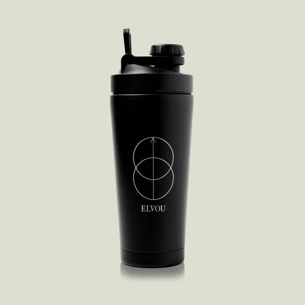Meng jouw eiwitshakes en creatine met de Elvou RVS Shakebeker. De shakebeker is lekvrij en heeft een inhoud van 700 ml. Dat is groot genoeg om al jouw poeders te mixen. De shaker bevat een mengnet wat ervoor zorgt dat al jouw shakes goed gemixt kunnen worden.